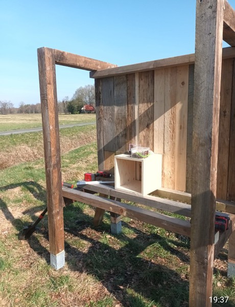 Seit der Teilnahme am Oster-Ferien-Spaß am 23.3. haben wir auf unserem Platz passend zu dem Blühstreifen auch eine Unterkunft für die Insekten!