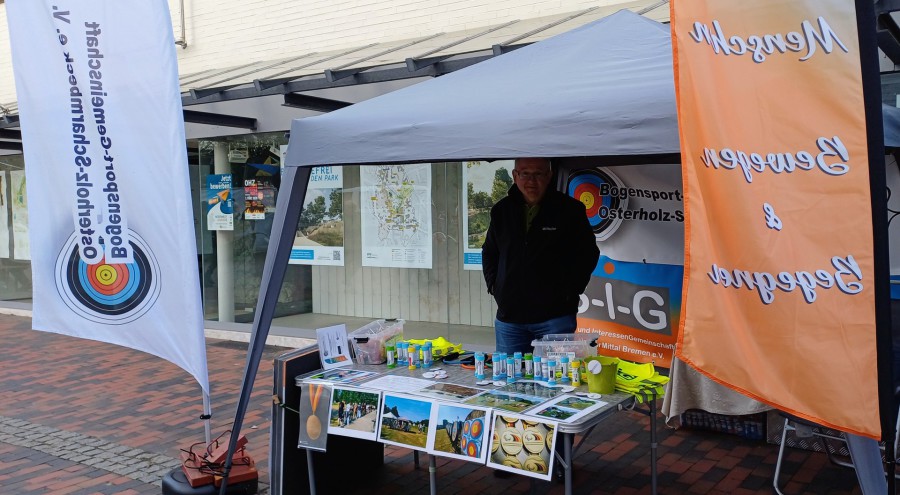Bei uns gab es zwar nichts zu Futtern, aber wir konnten trotzdem viele am Bogensport Interessierte ansprechen und über unseren Verein informieren.
